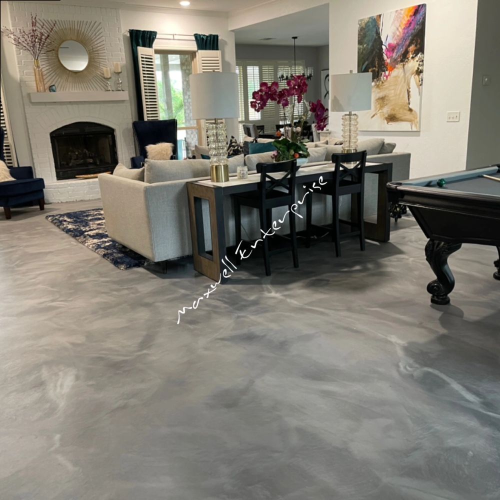 A unique and unrepeatable fluid flowing 100% solid epoxy flooring. These floors are custom with unlimited color and design combinations. They are durable, long lasting and easy to maintain.